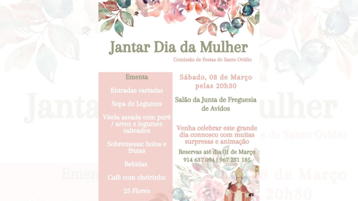 Concelho1 year agoFamalicão: Comissão de Festas de Santo Ovídio promove Jantar do Dia da MulherNo salão da Junta de Freguesia de AvidosRead More