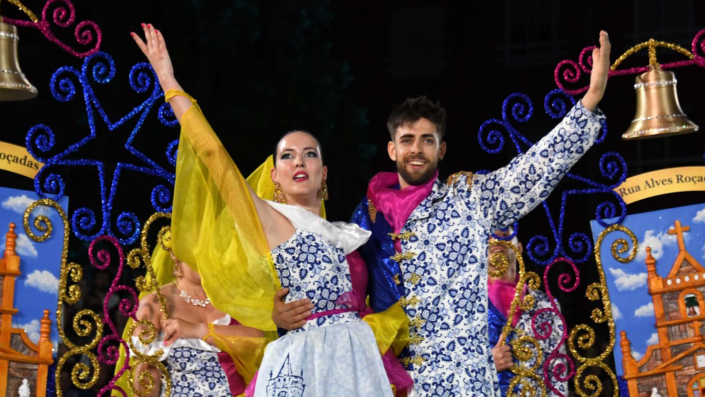 Desfile com carros alegóricos e centenas de foliões